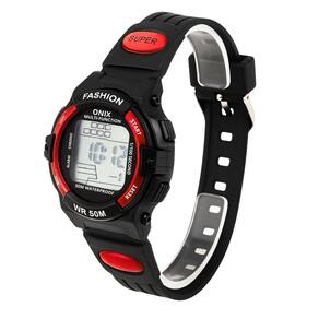 Relógio Menino Onix Digital IT-619 (0128) Preto e VermelhoMarca: Onix Categoria: Digital Analógico: Não Digital: Sim (1 Horário) Calendário: Sim Despertador: Sim Mostra o Dia da Semana: Sim Cronômetro: Sim Luz: Sim Cor da Iluminação: VerdeResistente à Água: 5 ATM (Pode ser utilizado para nadar no raso, por pouco tempo submerso) - Respingos: Sim - Chuva: Sim - Lavar Carro: Sim - Lavar Louça: Sim - Natação: Sim - Mergulho: Não Característica do Vidro: Acrílico Tipo de Fecho: Fivela Cor da Caixa: Preto Material da Caixa: Plástico Formato da Caixa: Redondo Diâmetro da Caixa: 34,00 (mm) Espessura da Caixa: 14,50 (mm) Cor da Pulseira: Preto Material da Pulseira: Plástico Largura da Pulseira: 14,00 (mm) Comprimento Máximo da Pulseira: 230,00 (mm) Alimentação: Bateria Interna Peso Líquido: 0,025 Kg Modelo: IT-619 (0128) Cor Predominante: Preto Cor Diferencial: Vermelho Garantia: 12 MesesConteúdo da Embalagem: 01 Relógio 01 Embalagem 01 Termo de Garantia