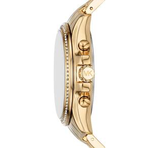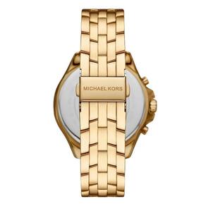 Feminino Ref: Mk7250/4dn Cronógrafo Dourado DESCRIÇÃO DO PRODUTO: Caixa de Metal Dourada Pulseira de Aço Dourada Vidro de Cristal Mineral Fundo Pressão Resistente à Água 3 Atm Diâmetro / Largura da Caixa: 42.00 Mm Altura da Caixa: 12.00 mm Função: Analógico, Cronógrafo, Calendário Linha: Michael Kors Jetset Mostrador dourado com números e pedras Aro externo de pedras Alimentação do Maquinário: Bateria Marca: Não Informado Ean: 7891530774584