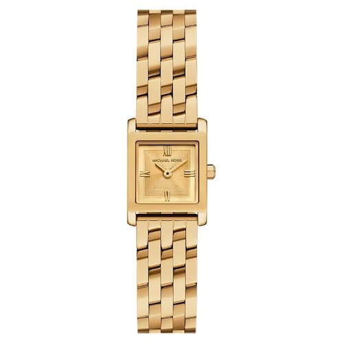 Georgie MK4931/1DN Dourado Este elegante design quadrado ganha um ar moderno com a exclusiva pulseira multilink em ângulo, que une inspiração clássica a um estilo sofisticado e contemporâneo. O modelo é complementado por um mostrador texturizado em tom sobre tom, entregando um visual refinado e atemporal. Especificações Técnicas Mecanismo: Analógico Quartzo Gênero: Feminino Visor: Dourado Vidro: Cristal mineral Pulseira: Dourado Material da Caixa: Aço inoxidável Prova d'água: 50m Diâmetro da caixa: 19mm Espessura da caixa: 7mm Largura da pulseira: 15mm Tipo de fecho: Fivela simples : 1 ano pela fabricante Michael Kors