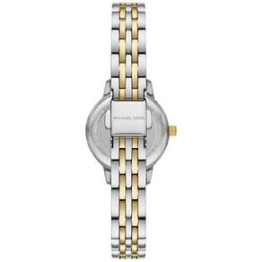 MKO1172/1KN Bicolor O MKO1172/1KN combina delicadeza e charme moderno com sofisticação. Com caixa pequena de 26mm e pulseira bicolor elegante prata e dourado , este acessório feminino exibe um mostrador prata bezel cravejado de cristais, adicionando brilho refinado. Resistente a até 50m, traz durabilidade sem perder o estilo. Compacto, leve e deslumbrante, é perfeito para quem busca um acessório elegante, ideal para o dia a dia e ocasiões especiais. Especificações Técnicas Mecanismo: Analógico Quartzo Gênero: Feminino Visor: Branco Vidro: Cristal mineral Material da Caixa: Aço inoxidável Prova d'água: 50m Diâmetro da caixa: 26mm Largura da pulseira: 12mm Pulseira: Prata e dourado Peso: 65g : 1 ano pela fabricante Michael Kors Marca: Não Informado