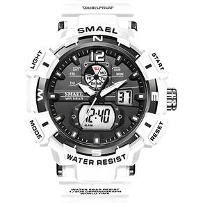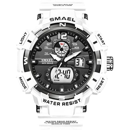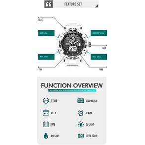 ?Military Sport Design: Design de discagem esportiva da moda, perspectiva de estilo militar. Grande Discagem (janela de vidro de cristal acrílico, caixa diamete Banda de relógio de alta qualidade, design de banda de resina reforçada é mais ergonômico, confortável de usar.), quem gosta de relógio de discagem grande deve adorar este relógio esportivo de moda?Multifunction: 1. O mostrador duplo analógico e digital suporta dois intervalos diferentes 2. Alarme 3. LED Back Light (mostrar tempo claro no escuro ) 4. Dia 5. Pare o Relógio 6. Opção de formato 12/24H 7. Resistente ao choque. Essas funktions o tornam perfeito para todo tipo de esporte e uso diário?Importe movimento de quartzo do Japão, mantenha o tempo preciso.Comfort with FASHION: banda de relógio PU macia e durável com o grande design de discagem dupla torná-lo confortável para usar e levá-lo à moda esportiva de borda. Perfeito para atividades internas e externas, como corrida, escalada, ect?Revem de água até 5 ATM: Adequado para uso diário. Resistente à respingo/chuva. Por favor, não pressione nenhum botão debaixo d'água, e em caso de dano ao anel impermeável, por favor, mantenha-o longe de vapor e água quente?Perfem após a venda, qualquer pergunta por favor não hesite em entrar em contato conosco. Vamos tentar o nosso melhor para deixar os clientes satisfeitos.