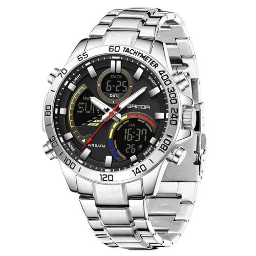 Este robusto relógio de pulso masculino foi projetado para o homem moderno que valoriza estilo e funcionalidade. Apresentando um design de aço inoxidável durável e um mostrador analógico-digital versátil, este relógio combina elegância com a praticidade necessária para o dia a dia e aventuras. Sua construção resistente à água o torna um companheiro confiável em qualquer situação, garantindo que você esteja sempre preparado.