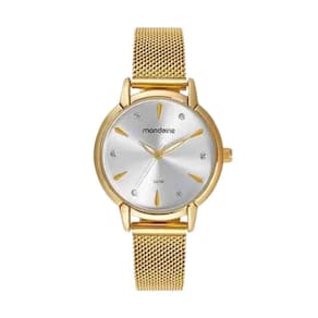 Relógio Mondaine Dourado Feminino 32703LPMVDE3Na Elister, a qualidade é uma prioridade em todos os nossos produtos e serviços. Nós nos esforçamos para oferecer aos nossos clientes uma ampla variedade de acessórios, incluindo relógios e óculos de sol, com as melhores marcas e estilos. Além disso, a nossa equipe é treinada para oferecer um atendimento excepcional, garantindo que cada cliente seja tratado com o respeito e a atenção que merece.ESPECIFICAÇÕES TÉCNICAS- Marca: Mondaine- Gênero: Feminino- Tipo de mostrador: Analógico- Tipo de movimento: Quartzo- Tipo de fecho: Gancho- Cor da caixa: Dourada- Cor do mostrador: Prata com detalhes dourados e pedrarias- Cor da pulseira: Dourada- Material da caixa: Aço- Material da pulseira: Aço- Largura da caixa: 3,2- Comprimento do relógio: 22 cm- Resistência à água: 5 ATM 50 metros - Garantia: 12 meses