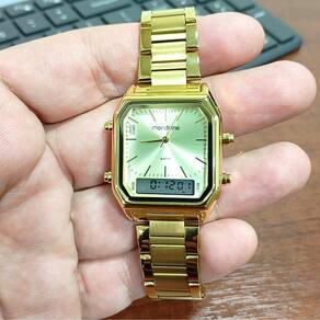 Marca: Mondaine Modelo: 32216LPMVDE1 Tipo de relógio: Analógico e Digital Gênero: Feminino Cor da caixa: Dourado Cor da pulseira: Dourado Estilo: Casual Alarme: Sim Cronômetro: Sim Calendário: Sim Luz: Sim Resistência à água: Sim – 3 ATM = 30 metros Tipo de fecho: Dobrável, com trava lateral Material da caixa: Aço Material da pulseira: Aço Características do vidro: Cristal Mineral Tamanho da caixa (A x L): 38 x 30 mm Espessura da caixa: 11 mm Comprimento da pulseira: 22 cm Largura da pulseira: 16 mm Tampa do fundo: Pressão Peso: 74 Gramas Alimentação: Bateria Garantia do Fabricante: 12 meses Fabricante: Seculus da Amazônia Ind e Com S/A