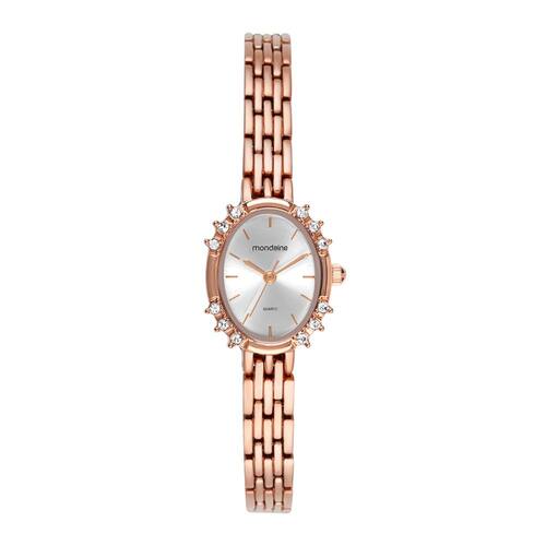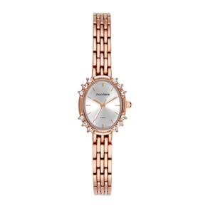 Características Formato do Relógio: oval Composição do Vidro: cristal mineral Material da Caixa: aço inox Cor da Caixa: rosê Cor do mostrador: prata Material da Pulseira: aço inox Cor da Pulseira: rosê Mecanismo: analógico quartz