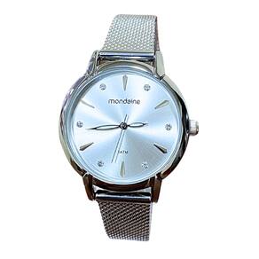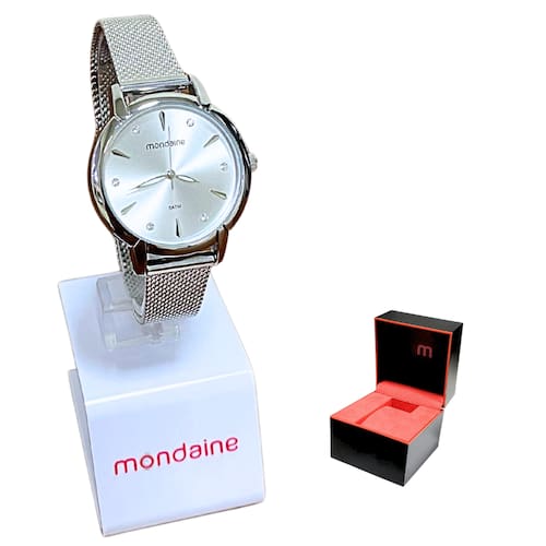 Marca: Mondaine Modelo: 32703L0MVNE1 Tipo de relógio: Analógico Gênero: Feminino Cor da caixa: Prateado Cor da pulseira: Prateado Estilo: Casual Alarme: Não Cronômetro: Não Calendário: Não Luz: Não – ponteiros fluorescentes Resistência à água: Sim – 5 ATM = 50 metros Tipo de fecho: Fivela de gancho Material da caixa: Aço Material da pulseira: Aço Características do vidro: Vidro Mineral Tamanho da caixa: 32 mm Espessura da caixa: 9 mm Comprimento da pulseira: 21 cm Largura da pulseira: 12 mm Tampa do fundo: Parafusado Peso: 44 Gramas Alimentação: Bateria Garantia do Fabricante: 12 meses Fabricante: Seculus da Amazônia Ind e Com S/A