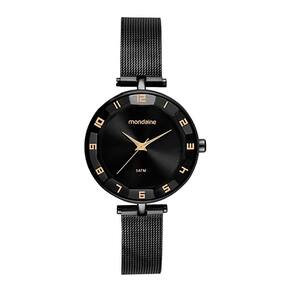 Características Formato do Relógio: Redondo Composição do Vidro: Cristal Mineral Material da Caixa: Aço Inox Cor da Caixa: Preto Cor do mostrador: Preto, Dourado Material da Pulseira: Aço Inox Cor da Pulseira: Preto Mecanismo: Analógico-Quartz