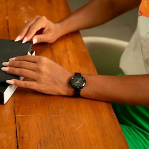 Resistência à Água Pressão: 5 ATMs Resistência a respingos: Sim Prática de natação: Sim Prática de mergulho: Não recomendado Não recomendado utilizar em água salgada ou durante o banho quente (exceto relógios apropriados para mergulho profissional)