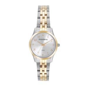 Apresentando um design clássico, este relógio analógico combina uma caixa compacta com numeração completa, facilitando a visualização das horas. Seu visor exibe um elegante efeito metálico, acentuado pela aplicação de cristais que adicionam um toque sutil de brilho ao acessório. Fabricado com uma caixa em metal de 2,8cm de diâmetro, este relógio é complementado por uma pulseira trabalhada em aço escovado e polido, conferindo-lhe um acabamento refinado. Com sua versatilidade e elegância discreta, é a escolha ideal para uso diário, adaptando-se perfeitamente a pulsos finos e delicados, adicionando um toque de sofisticação a qualquer look. Marca: RELOGIO MONDAINE