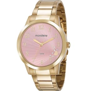 O Relógio possui mecanismo Analógico, a pulseira é na cor Dourado, fabricada em Metal, com 24 cm de comprimento e possui Fecho Dobrável com Dois Botões. A Caixa (peça onde fica o mostrador) é fabricada em Metal, mede 4,0 cm de diâmetro, sem considerar a coroa, e 1,0 cm de espessura, o que é considerado tamanho Grande para relógios do gênero Feminino. O Relógio Mondaine Feminino 53756LPMVDE1 tem nível de resistência à água especificado em 5 ATM. É Fabricado por Seculus da Amazônia Indústria e Comércio SA.