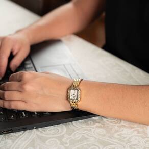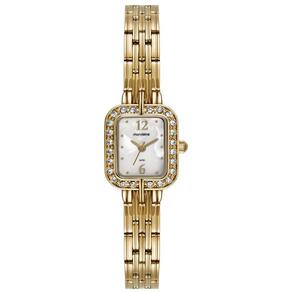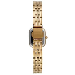 Características Formato do Relógio: Retangular Composição do Vidro: Cristral Mineral Material da Caixa: Aço Inox Cor da Caixa: Dourado Cor do mostrador: Madrepérola Material da Pulseira: Aço Inox Cor da Pulseira: Dourado Mecanismo: Analógico - Quartz
