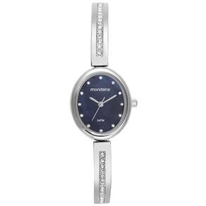 Relógio MONDAINE feminino oval prata azul 32749L0MVNM2