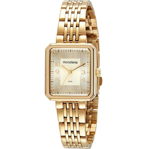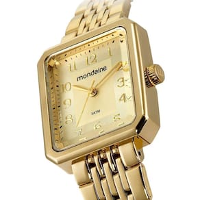 Relógio Feminino Quadrado Casual Dourado Referência: 32358LPMVDE1 Este relógio de pulso analógico casual combina elegância e praticidade em um design sofisticado. Com uma caixa quadrada folheada dourada, o modelo apresenta marcadores completos, facilitando a visualização das horas. A caixa em metal, com dimensões de 2,7x3,8 cm, oferece um ajuste perfeito, inclusive para pulsos menores. A pulseira em aço, trabalhada em pequenos gomos, conta com um fecho de acionamento lateral, garantindo segurança e conforto ao uso diário. Especificações ATM - Pressão Máxima 3 ATM Altura 9 mm Comprimento Do Relógio 21 cm Número Elos Removíveis 6 Alarme Não Tamanho Da Caixa 27x38 mm Tamanho Do Vidro 24 mm Garantia 1 Ano Largura Da Pulseira 18 mm Saiba o tamanho ideal para você: Relógio Feminino Até 35 mm: Pulso P De 36 a 38 mm: Pulso M De 39 a 40 mm: Pulso G Acima de 40 mm: Pulso GG
