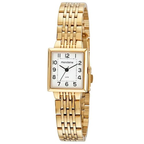 Relógio MONDAINE feminino quadrado dourado 32378LPMVDE1