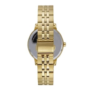 Caixa de Metal Pulseira de Aço Vidro de Cristal Mineral Fundo Rosqueado Resistente à Água 5 Atm Diâmetro / Largura da Caixa: 40.00 MM Função: Analógico Alimentação do Maquinário: Bateria Mostrador Dourado com todos os números Garantia de 1 Ano