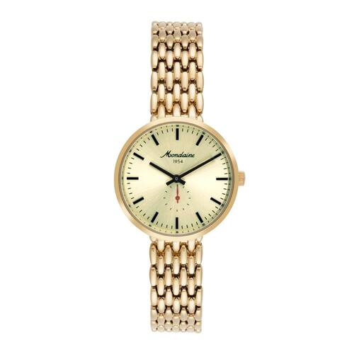 Mostrador Dourado e inscrição Mondaine 1954
