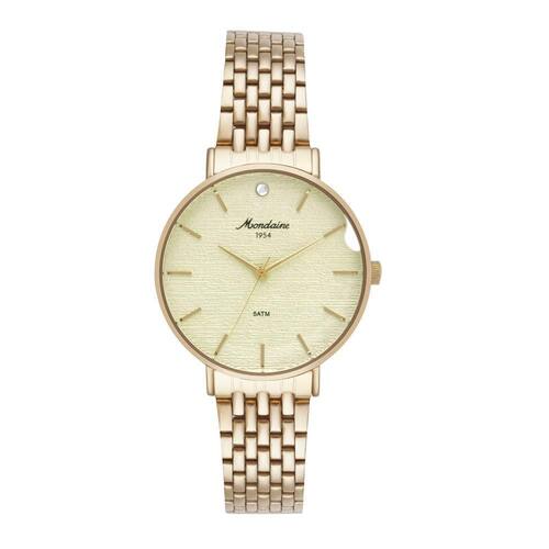 Relogio Mondaine Feminino Ref: 32923lpmvde1 Fashion Dourado 1954 DESCRIÇÃO DO PRODUTO: Caixa de Metal Pulseira de Aço Vidro de Cristal Mineral Fundo Rosqueado Resistente à Água 5 Atm Diâmetro / Largura da Caixa: 36.00 Altura da Caixa: 10.00 MM Função: Analógico Alimentação do Maquinário: Bateria Mostrador Dourado Com Pedra e inscrição Mondaine 1954 Coleção Especial Mondaine 70 Anos de 1 Ano Marca: Não Informado Ean: 7909669204411