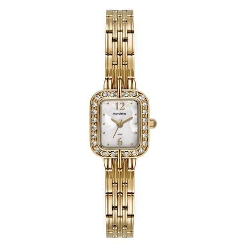 Relogio Mondaine Feminino Ref: 99781lpmvde1 Retangular Dourado DESCRIÇÃO DO PRODUTO: Caixa de Metal Pulseira de Aço Vidro de Cristal Mineral Bisotê Fundo Resistente à Água 3 Atm Diâmetro / Largura da Caixa: 20.00 MM x 22.00 MM Função: Analógico Alimentação do Maquinário: Bateria Mostrador Estilo Madreperola Branca com números Aro Externo com Pedras de 1 Ano Marca: Não Informado
