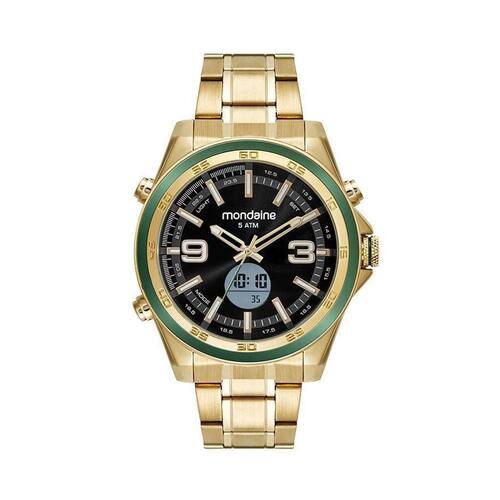 Formato da CaixaRedondo MarcasMondaine GêneroMasculino CorDourado Tamanho da CaixaGrande Material da PulseiraAço MecanismoAnadigi Comprimento do Relógio26 cm Pulseira AjustávelSim Material da CaixaMetal Espessura da Caixa1,5 cm Dimensões da Caixa4,8 cm de diâmetro Material do VidroCristal Mineral Nível de Resistência à Água5 ATM CalendárioCalendário Digital CronômetroCronômetro Digital AlarmeUm Alarme Diário Timer Contador Regressivo Não Possui Timer Função Chime Bip de Horas Aviso de Hora Cheia Função Chime Iluminação NoturnaIluminação de Fundo FornecedorSeculus da Amazônia Indústria e Comércio SA. CNPJ: 34.516.088/0001-10 Prazo de GarantiaGarantia de 1 Ano com o Fornecedor O que Acompanha o ProdutoCerificado de Garantia do Fabricante Manual em Português