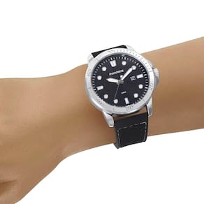 Características Formato do Relógio: Redondo Composição do Vidro: Cristal mineral Material da Caixa: Metal Cor da Caixa: Prata Cor do mostrador: Preto Material da Pulseira: Borracha Cor da Pulseira: Prata Mecanismo: Analógico Quartz