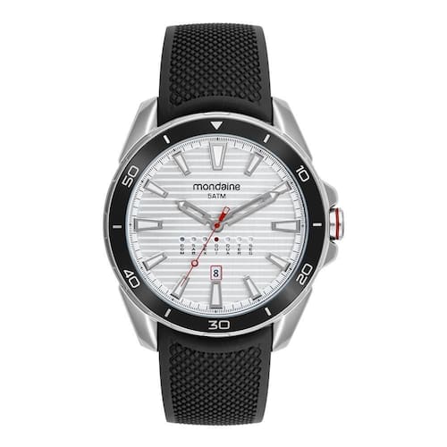 Relogio Mondaine Masculino Ref: 32896g0mvni1 Esportivo Prateado DESCRIÇÃO DO PRODUTO: Caixa de Metal Pulseira de Silicone Preta/Vermelha Vidro de Cristal Mineral Fundo Rosqueado Resistente à Água 5 Atm Diâmetro / Largura da Caixa: 48.00 MM Função: Analógico, Calendário Duplo Dia da Semana e Dia do Mês Mostrador Prateado Aro Fixo Preto Alimentação do Maquinário: Bateria de 1 Ano