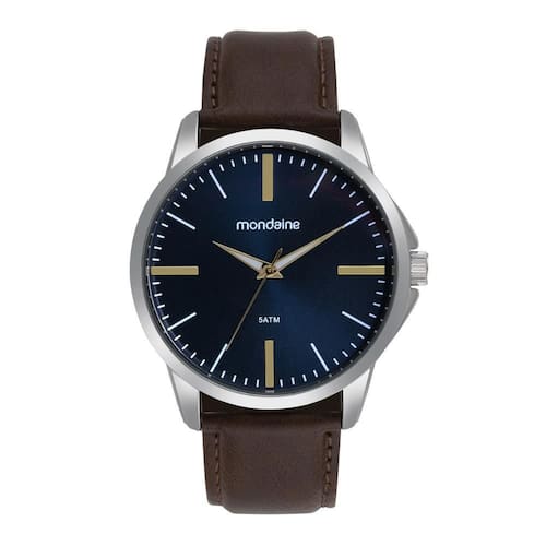 Relogio Mondaine Masculino Ref: 99788g0mvnh1 Casual Prateado DESCRIÇÃO DO PRODUTO: Caixa de Metal Pulseira de material sintético Marrom Vidro de Cristal Mineral Fundo Rosqueado Resistente à Água 5 Atm Diâmetro / Largura da Caixa: 44.00 MM Função: Analógico Mostrador Azul com detalhes em dourado Alimentação do Maquinário: Bateria de 1 Ano