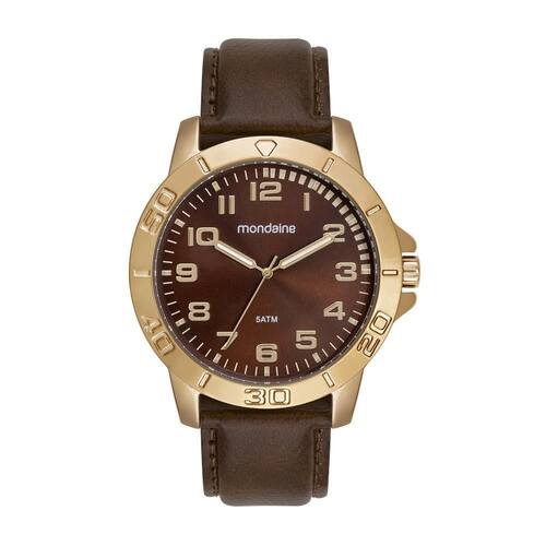 Relogio Mondaine Masculino Ref: 99810gpmvdh2 Casual Dourado DESCRIÇÃO DO PRODUTO: Caixa de Metal Pulseira de material sintético Marrom Vidro de Cristal Mineral Fundo Rosqueado Resistente à Água 5 Atm Diâmetro / Largura da Caixa: 45.00 MM Função: Analógico Mostrador Marrom com todos os números e detalhes em cinza Alimentação do Maquinário: Bateria de 1 Ano Marca: Não Informado