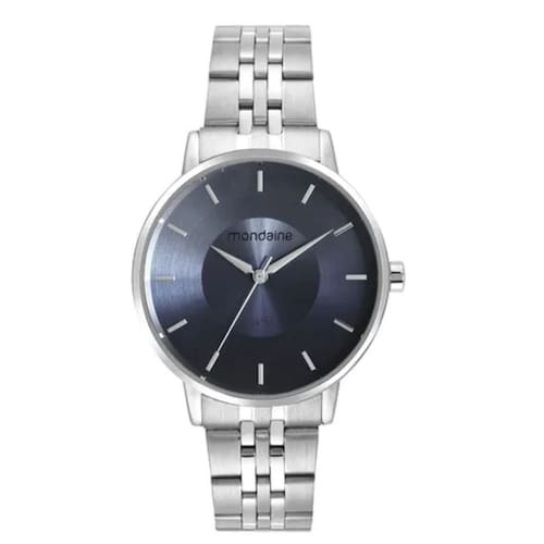 Descrição RELÓGIO MONDAINE UNISSEX - MODELO 32682L0MVNE6 CARACTERÍSTICAS: Caixa redonda em metal na cor prata Pulseira em aço Fecho de pressão Visor em cristal mineral Mostrador fundo azul Resistente a água, suporta 5 atm ou 50 metros de pressão Mecanismo de funcionamento a bateria Tamanho da caixa: - 40 mm de largura sem a coroa - 42 mm de largura com a coroa - 46 mm de altura da caixa (lug to lug) - 9 mm de espessura Peso: 84 gramas