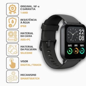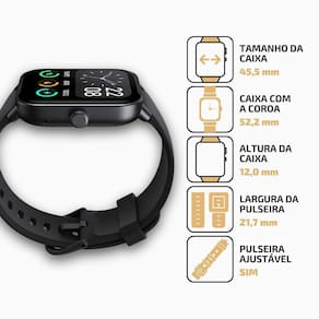 O Smartwatch Mondaine 30001M0MVNV1 combina tecnologia e estilo em um design moderno e funcional. Com monitoramento de saúde, assistente de voz Alexa e chamadas Bluetooth, é ideal para quem busca praticidade no dia a dia. Resistente à água IP68, pulseira confortável de silicone e display touch personalizável. Marca: MONDAINE Referência: 30001M0MVNV1 Modelo: SmartWatch Ficha Técnica: Formato da caixa: Quadrado Gênero: Unissex Cor: Preto Cor do mostrador: Preto Material da Pulseira: Silicone Material da Caixa: ABS+PC Mostrador: Digital/Touch Mecanismo: Smartwatch Nivel de Resistência à Agua: IP68 Material do Vidro: TFT-LCD Tipo de Fecho: Fivela Botão Lateral Medidas: Pulseira Ajustável: Sim Tamanho da Caixa: 52,2 mm Altura da Caixa: 12,0 mm Dimensões da Caixa com a Coroa: 40,2 mm Largura da Pulseira: 21,7 mm Itens Inclusos: Funções: - Assistente de Voz Alexa: - chamadas via Bluetooth - Modo de Economia de Bateria para prolongar a duração da carga - monitoramento de dados diários - monitor de sono - medição de frequência cardíaca - suporte para múltiplos esportes, que você pode escolher pelo aplicativo - monitoramento de SPO2, - informações sobre o clima - notificações - disparador remoto de fotos - tocador de música - respiração guiada - cronômetro - alarmes - timer e lanterna. - funções de Me Encontre e Encontrar Telefone, - assistente de ciclo menstrual - mostrador personalizável - lembretes de sedentarismo e hidratação - monitor de . - bateria de 300mAh, que proporciona uma duração de 5 a 7 dias com Bluetooth ativo. de 12 meses para todo o Brasil. Marca: Não Informado