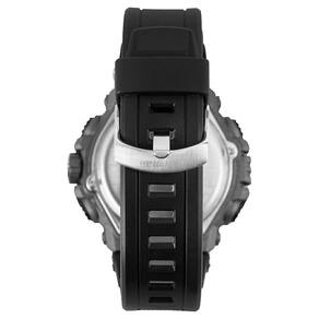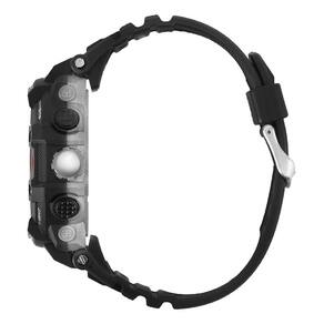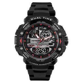 Apresentamos o mais recente modelo da linha Action. Totalmente em preto com detalhes em vermelho, este relógio combina elegância com robustez. Construído com materiais de alta qualidade, é resistente até 100 metros. Seu mostrador LCD negativo oferece uma visualização nítida, enquanto os detalhes em vermelho adicionam estilo. Com recursos como cronógrafo, despertador e luz eletroluminescente, é perfeito para aventuras e uso diário