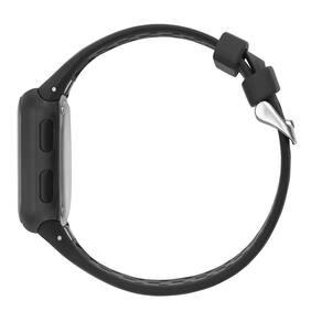 A pulseira de silicone preto, além de leve e confortável, possui acabamento perfurado que garante melhor ventilação para a pele durante o uso prolongado, ideal para rotinas ativas e esportivas. O modelo ainda apresenta botões laterais em aço e fecho fivela ajustável, oferecendo firmeza e segurança no pulso.