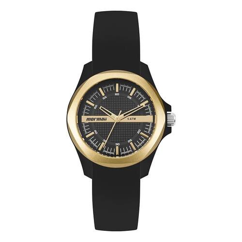 O Mormaii MO2036JK/8P da linha Luau é a escolha ideal para mulheres que buscam estilo com atitude. Com design marcante e visual sofisticado, o relógio combina uma moldura dourada com mostrador preto texturizado e pulseira de silicone preta, criando um contraste elegante que se adapta tanto ao dia a dia quanto a momentos especiais.