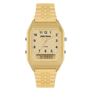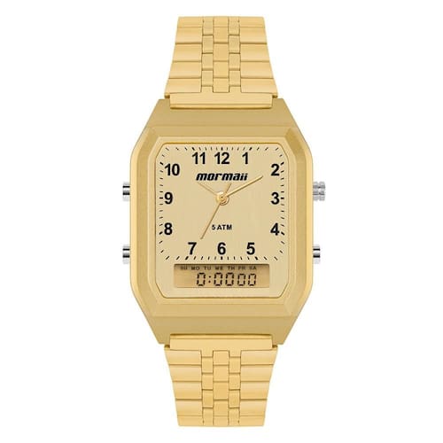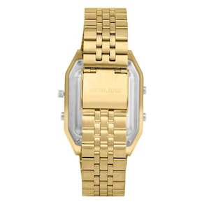 Relógio Vintage apresenta um novo modelo, com pulseira de aço inoxidável em 5 links banhado em dourado. A linha traz um relógio único, que apresenta mostrador na cor preto com duas opções de visualização: digital e analógico. Além disso, conta com display com indicação de dia, semana e mês, incluindo alarme e cronômetro. Apresenta resistência à água de 50 metros.
