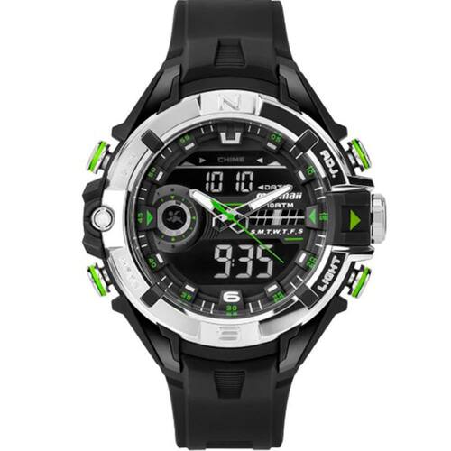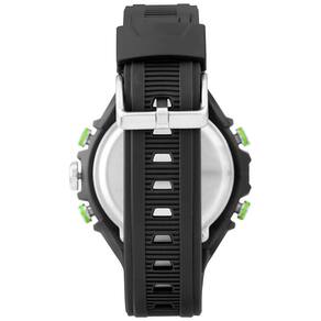 Características Formato do Relógio: Redondo Composição do Vidro: Acrílico Material da Caixa: Resina Cor da Caixa: Preto, Prata Cor do mostrador: Digital, Preto Material da Pulseira: Borracha Cor da Pulseira: Preto Mecanismo: Analógico-Digital