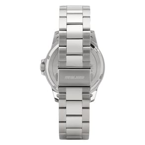 A construção em aço inoxidável na caixa e na pulseira garante resistência e durabilidade, além de um acabamento sofisticado que permite uso versátil no dia a dia. O bezel com marcações reforça o estilo esportivo, enquanto os ponteiros e índices com lume facilitam a leitura em ambientes com pouca iluminação.