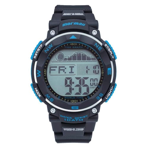 Inspirado no estilo de vida dos surfistas, o Relógio Mormaii Masculino Pro é ideal para quem busca resistência, funcionalidades práticas e um design marcante. Sua caixa robusta de 50 mm transmite imponência e durabilidade, enquanto os detalhes em azul no aro, botões e logotipo trazem um toque de personalidade esportiva.