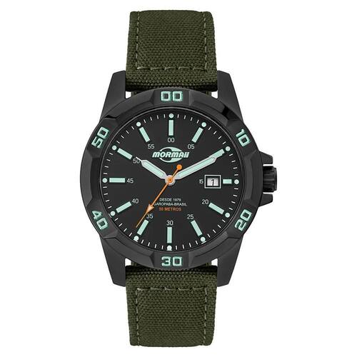 O Mormaii Steel Basic MO2317AF/2P é um relógio masculino com forte identidade militar, robusto e pronto para o uso diário. Sua caixa em aço preto traz resistência e visual imponente, enquanto a pulseira em tecido verde militar complementa o estilo aventureiro e casual do modelo.
