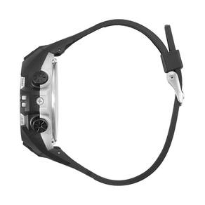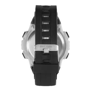 O visor digital exibe com clareza as funções disponíveis: cronômetro, alarme, calendário completo e luz noturna, garantindo praticidade em qualquer situação. Com 50 mm de diâmetro de caixa, o modelo se destaca no pulso, oferecendo uma presença imponente, sem perder o conforto.