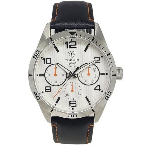 Relógio MultiFunção Masculino Tuguir ógico Infinity TGI37061 Preto e Branco Relógio MultiFunção Masculino Tuguir ógico Infinity TGI37061 Preto e Branco Marca: Tuguir Categoria: ógico ógico: Sim 1 Horário Ponteiros Fluorescentes: Sim Digital: Não Calendário: Sim Despertador: Não Mostra o Dia da Semana: Sim Mostra o Dia do Mês: Não Cronômetro: Sim Contador Regressivo: Não Luz: Não Resistente à Água: 10 ATM Pode ser para Mergulhar - Respingos: Sim - Chuva: Sim - Lavar Carro: Sim - Lavar Louça: Sim - Natação: Sim - Mergulho: Sim Característica do Vidro: Cristal Mineral Tipo de Fecho: Fivela Cor da Caixa: Prata Material da Caixa: Aço Formato da Caixa: Redondo Diâmetro da Caixa: 44,00 mm Espessura da Caixa: 12,50 mm Cor da Pulseira: Preto Material da Pulseira: Couro Largura da Pulseira: 21,00 mm Comprimento Máximo da Pulseira: 250,00 mm Alimentação: Bateria Interna Peso Líquido: 7,000 Kg Modelo: TGI37061 Cor Predominante: Preto Cor Diferencial: Branco : 12 Meses Conteúdo da Embalagem: 01 Relógio 01 Embalagem 01 Termo de Marca: Não Informado