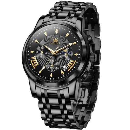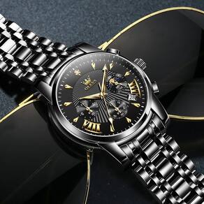 [YIKASHI] Se você tiver alguma dúvida, sinta-se à vontade para entrar em contato conosco. Ajudaremos você a resolver o problema o mais rápido possível. - Cronometragem confiável: mantenha o tempo preciso com o movimento de quartzo confiável e a lente de cristal mineral resistente a arranhões deste relógio de aço inoxidável - Elegante e durável: a caixa e a alça de aço inoxidável polido oferecem um visual clássico e elegante que também é durável e confortável de usar - Relógio social: o mostrador multifuncional e os ponteiros dourados adicionam um toque de prestígio a este relógio masculino. Este relógio é ideal para um dia especial para mostrar sua apreciação pela pessoa única em sua vida - Resistente à água: com resistência à água de até 30 m, este relógio é para uso diário e pode suportar chuvas, respingos e breve imersão em água; no entanto, não é adequado para tomar banho, nadar ou nadar - OLEVS: Se você tiver alguma dúvida, informe-nos e tentaremos resolver seu problema o mais rápido possível. Agradecemos seu amor por nossos produtos