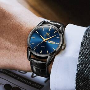 OLEVS Relógio masculino simples com dia e data, relógios analógicos de quartzo de aço inoxidável para homens, ponteiros luminosos clássicos, mostrador masculino, mostrador preto/branco/azul, A4 - - Design moderno e clássico: com todas as características que tornam nossos relógios tão amados - movimento de quartzo confiável, cristal mineral endurecido, janela de dia/data, ponteiros luminosos dourados e caixa substancial - este é um relógio que se encaixa no seu estilo de vida, quer você esteja sentado em reuniões ou caminhando pelas trilhas. - Mostrador simples: a face do relógio de 39 mm tem o tamanho perfeito sem ser muito grande e tem o ajuste certo no seu pulso. Este relógio tem um mostrador azul básico embelezado com ponteiros e índices dourados. Escolha entre três cores, incluindo preto, branco e azul. - Materiais de alta qualidade: a capa é de aço inoxidável premium e a face de vidro é construída com cristal mineral endurecido para maior durabilidade. A pulseira de couro preto macio se encaixa perfeitamente em seu pulso enquanto ainda oferece conforto absoluto. - Relógios bonitos para homens: aparência requintada e linhas suaves do relógio masculino mostram um senso único de moda, é uma excelente escolha para combinar com vestidos. É o relógio preferido para pai, marido, filho, irmão, namorado, amigo e muito mais. - O que você recebe: relógio masculino OLEVS de couro. Resistente à água até 30 m, adequado para uso diário. Não é adequado para banho, natação, mergulho e outros trabalhos relacionados à água.