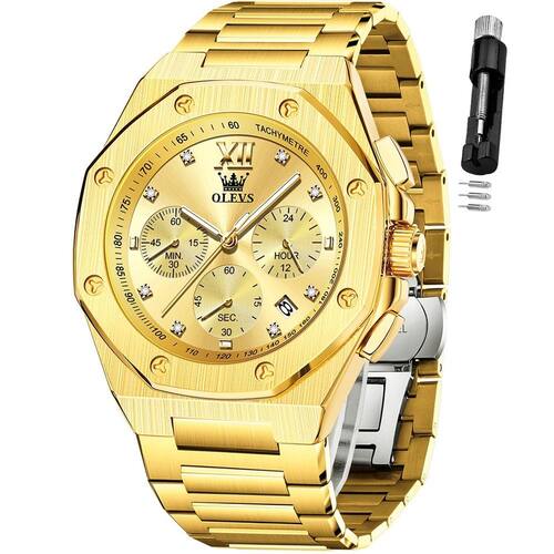 - Relógios masculinos para empresas: movimento de quartzo de qualidade premium, mostrador fácil de ler, caixa dourada e prateada de 42 mm, uma janela de exibição de data sempre prática e ponteiros luminosos. O relógio refinado enfeita o uso diário e social masculino.