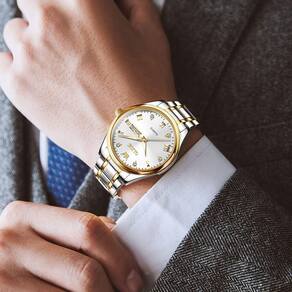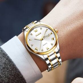 Relógio masculino casual de aço inoxidável, mostrador grande de quartzo analógico fácil de ler com dia e data, relógio masculino clássico à prova d'água com diamante e algarismos arábicos romanos, - Design elegante e moderno: movimento de quartzo de alta qualidade, ponteiros luminosos dourados e um mostrador analógico branco conferem um apelo clássico a este relógio masculino. É ideal para usar — desde conjuntos casuais e descolados até peças separadas prontas para o escritório. - [Mostrador fácil de ler] ? O número romano dourado e os fabricantes de horas de diamante em um mostrador branco oferecem excelente contraste para facilitar a leitura. Uma janela de dia e data nas 3 horas significa que você nunca esquecerá aniversários e aniversários. - Pulseira de aço inoxidável premium: a caixa e a pulseira de aço inoxidável altamente polido incorporam uma superfície simples que permite que o relógio brilhe e brilhe de todos os ângulos, enquanto também oferece conforto ao pulso. Fornece ferramentas de ajuste gratuitas para ajustar a pulseira em casa. - Presentes perfeitos: Todo cavalheiro perspicaz precisa de um relógio que seja igualmente elegante e sofisticado. É o presente preferido para pai, marido, filho, irmão, namorado, amigo e muito mais. Perfeito para o Dia dos Namorados, aniversários, Dia dos Pais, Natal e outros eventos. - O que você recebe: relógio simples OLEVS masculino, garantia de devolução do dinheiro em 30 dias, nossa garantia de 12 meses sem preocupações e atendimento ao cliente amigável. Resistente à água até 30 m, adequado para uso diário. Não é adequado para banho, natação, mergulho e outros trabalhos relacionados à água.