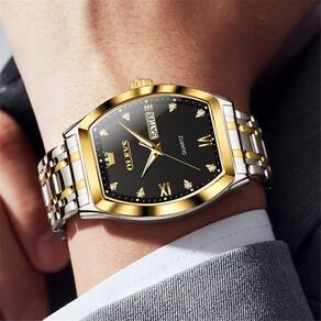 Relógios masculinos de luxo para data, luminosos, à prova d'água ? Função ? Janela de calendário de data para homens que podem saber a data e organizar o trabalho diário - Trabalho eficiente e rápido/Verde claro luminoso - Os ponteiros do relógio podem brilhar no escuro/Fácil de ler/Com uma ferramenta ajustável para ajustar livremente a pulseira do relógio/à prova de choque/Resistente à água até 30 metros - 30 metros, lavagem à mão, uso diário à prova d'água , não é adequado para menores atividades aquáticas e ambiente de vapor de água quente - Relógios quadrados de luxo para homens: com um movimento de quartzo originalmente importado, a OLEVS apresenta seus relógios de quartzo quadrado projetados especificamente para homens. Com um grande mostrador preto, estes relógios exalam uma estética de alta qualidade enquanto simplificam o gerenciamento do tempo sem esforço. - Relógios masculinos de aço inoxidável: um elegante relógio quadrado prateado e dourado feito sob medida para ocasiões de negócios, oferecendo um design de aço inoxidável de dois tons para homens. Este relógio vem com uma ferramenta simples para ajustar a pulseira, garantindo uma operação simples e fácil. - Relógio analógico masculino de quartzo: com um mostrador grande com números romanos em forma de diamante, este relógio foi projetado para facilitar a leitura. Combina elegância clássica com moda moderna, oferecendo ponteiros luminosos que o tornam um acessório essencial para homens maduros. - Relógio à prova d'água para homens: este relógio de pulso masculino é resistente à água até 30 metros, tornando-o adequado para uso diário e capaz de suportar respingos e chuva. No entanto, não é recomendado para atividades como banho, natação, mergulho ou qualquer outro trabalho relacionado à água. - OLEVS Relógios masculinos: cada relógio masculino chega em uma caixa da marca OLEVS . Este relógio é adequado para uma variedade de ocasiões, incluindo aniversários, festas, casamentos e muito mais, tornando-o um presente ideal para seu pai, irmãos, maridos, amigos, parceiros de negócios e outros conhecidos do sexo masculino.