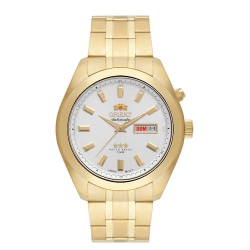 Automático Gênero: Masculino Visor: Prata Vidro: Cristal Mineral Funções: Calendário Duplo Pressão: 100 M Características: com caixa Aço + IPG e pulseira Aço + IPG Diâmetro da caixa: 44 MM
