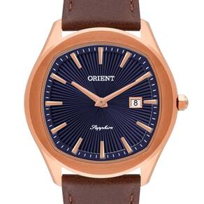 Tipo de Movimento: Quartzo Diâmetro da Caixa: 41mm Material da caixa: Aço Inoxidável Dourado Rosé IPRG Material da Pulseira: Couro Material do Vidro: Safira Visor: Azul com efeito sunray + Calendário Resistência à água: 50m Marca: Não Informado Ean: 7891529269619