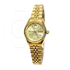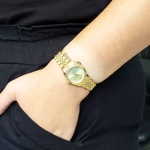 Marca: Orient Modelo: 559EB1NH C1KX Tipo de relógio: Analógico Gênero: Feminino Cor da caixa: Dourado Cor da pulseira: Dourado Estilo: Casual Alarme: Não Cronômetro: Não Calendário: Sim – Português e Inglês Luz: Não – ponteiros fluorescentes Resistência à água: Sim – rotinas diárias Tipo de fecho: Dobrável Material da caixa: Aço Inoxidável Material da pulseira: Aço Inoxidável Características do vidro: Vidro mineral Tamanho da caixa: 30 mm Espessura da caixa: 11 mm Comprimento da pulseira: 21 cm Largura da pulseira: 10 mm Tampa do fundo: Rosqueado Peso: 49 Gramas Alimentação: Automático Garantia do Fabricante: 12 meses Fabricante: Orient Relógios da Amazônia LTDA