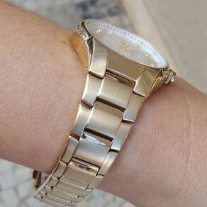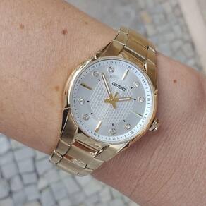 Relogio Orient feminino dourado pequeno social FGSS0202 S1KX Relogio Orient feminino pequeno dourado com strass de aço inox a prova dagua FGSS0202 S1KX Medida da caixa: 32 mm medida sem a coroa Medida da caixa: 34 mm medida com a coroa Espessura caixa: 8 mm Comprimento pulseira: 20 cm Peso: 73 gramas : 12 meses em toda a rede de assistências Orient no Brasil Cor da Caixa: Dourado Cor da pulseira: Dourado fosco com detalhe polido Cor do aro: Dourado Cor do mostrador: Prata com strass Material da caixa: Aço Inox Material da pulseira: Aço Inox Mecanismo: Analógico Pulseira ajustavel: Sim Fundo de rosca: Sim Vidro: Cristal Mineral Máquina: Quartz Movido a Bateria RESISTÊNCIA A ÁGUA: 50m 5atm Pode lavar as mãos SIM Pode tomar banho de chuveiro SIM Pode usar em piscina: SIM Pode usar em mergulho profundo NÃO Fabricante: Orient Relógios da Amazônia LTDA ACOMPANHA: Relógio Caixinha Orient Certificado de Marca: Não Informado Ean: 7891529986905