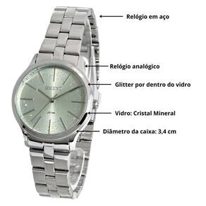 Relógio orient feminino fbss0143 g1sx prateado fundo cinza Cor: verde Bem vindo a loja de tudo mais um pouco, é um prazer ter você aqui = revendedor autorizado = de 1 ano diretamente com o fabricante = manual de intruções e certificado de Relógio orient eternal feminino analógico fbss0143 prata verde água Informações básicas - marca: orient - referência: fbss0143 f1sx - gênero: feminino - : 1 ano diretamente com o fabricante Funções: - analógico Características - composição do vidro: cristal mineral - material da caixa: aço inox - cor da caixa: prateado - material da pulseira: aço inox - cor da pulseira: prateado - bateria - peso: 76 g Medidas - diâmetro da caixa : 3,1 cm - diâmetro do visor: 2,6 cm - espessura da caixa: 0,6 cm - largura da pulseira: 1,6 cm - peso: 68 g Resistência à água 5 atm - wr: 50 mts - pode lavar as mãos: sim - pode usar em água corrente: sim - pode usar na piscina: não - pode usar em mergulho profundo: não Acompanha: - manual de instruções - embalagem - certificado de Ainda está com dúvidas Tire todas elas no chat, será um prazer atender você = Ean: 7891529255438