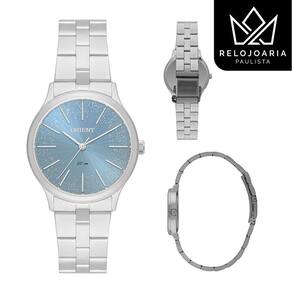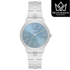 Relógio Orient Feminino Prata FBSS0143 A1SX Relógio Orient feminino, clássico, redondo, analógico, com caixa e pulseira em aço. Visor azul com brilho. Tamanho pequeno 3 cm . Orient Eternal FBSS0143-A1SX Analógico Movimento: Quartz Gênero: Feminino Visor: Azul Vidro: Cristal Mineral Diâmetro da caixa: 31 mm Altura da caixa: 8 mm Pressão: 50M Fundo: Pressão Peso: 67 g Característica: Caixa e pulseira em aço. Fecho dobrável com dois botões. : 1 ano obrigatória a ativação via QR Code na etiqueta do relógio . Acompanha caixa da marca, manual de instruções e certificado de . Marca: Não Informado